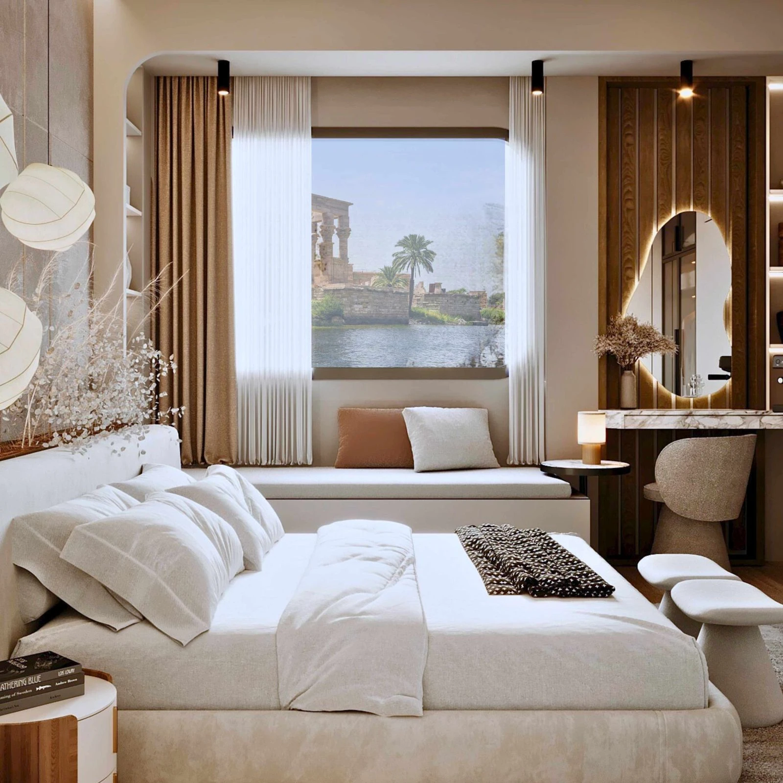 3 Nights / 4 Daysloose yourself and feel the warmth of our custom well designed king bed cabins on the Dahabiya Cruise Luxor to Aswan, where luxury feels effortless and every detail is made for your comfort. with a very elegant touches. our Hathor Luxury Nile Cruise King Bed Rooms offer an experience that feels like home only better.
